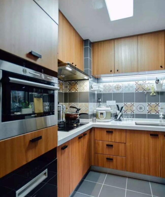 厨房翻新原木色橱柜设计案例效果图(五)