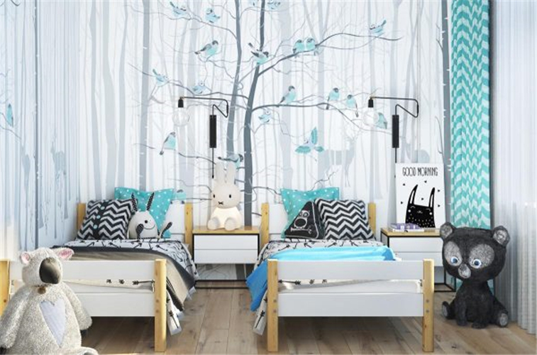 儿童房的装修,色彩应丰富多彩,活泼新鲜,简洁明快,具有童话式的意境,让儿童在自己的小天地里自由地学习生活。家具要少而精,合理巧妙地利用室内空间。最好是多功能、组合式的。家具应尽量靠墙壁摆放,以扩大活动空间。