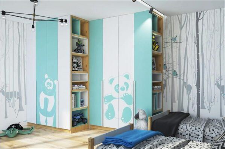 衣柜侧面采用镂空层板的设计,可以放置许多的玩具和书籍
