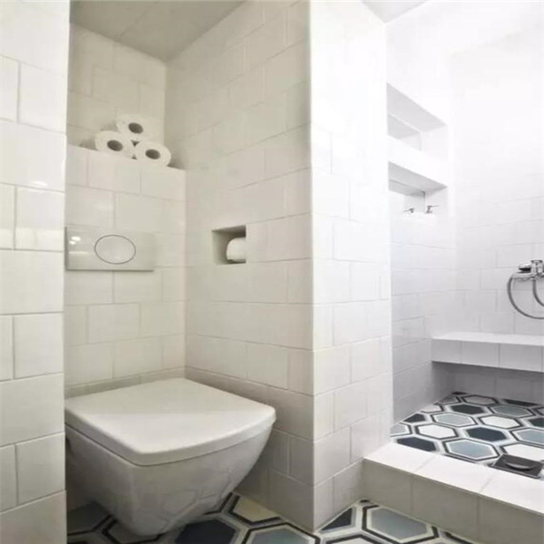 马桶采用一体式的,节约了厕所空间,上方的壁龛用于收纳