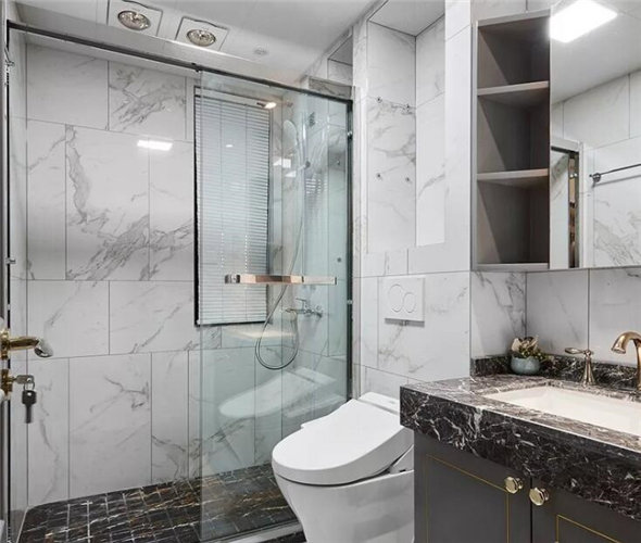 现代风格卫生间翻新装修效果。