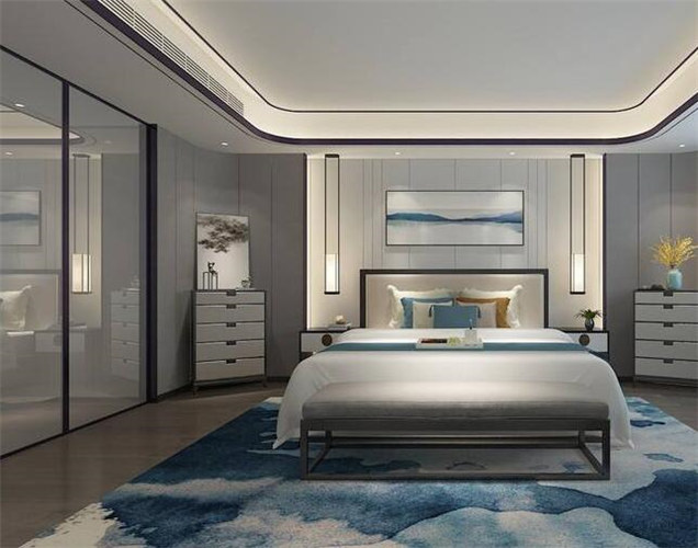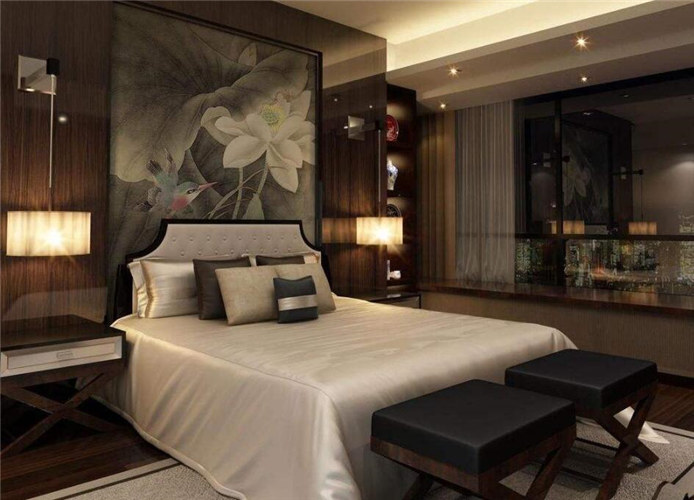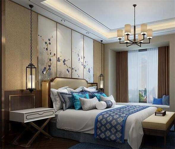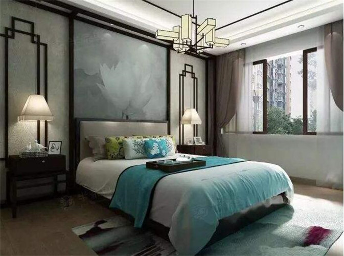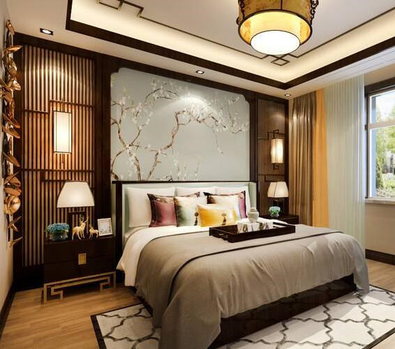 新中式风格卧室翻新装修案例效果图(二)