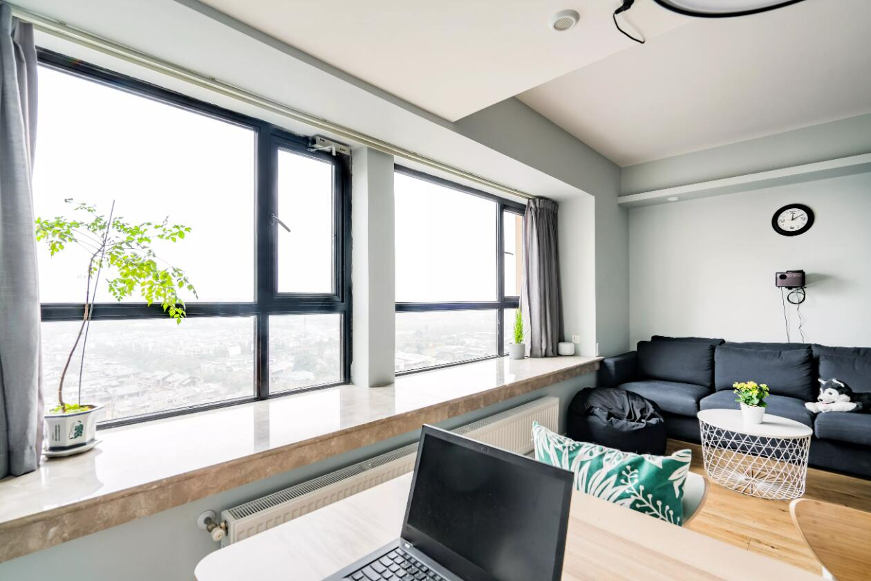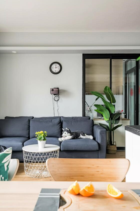 一张3人沙发,搭配小茶几,构成了客厅的主体