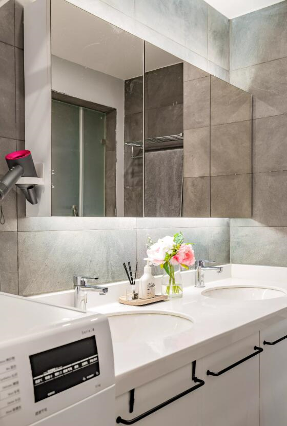 卫生间则是改造了原有的户型,做了双人洗手台。