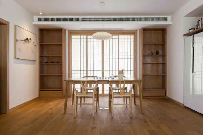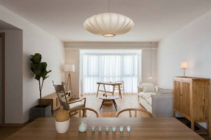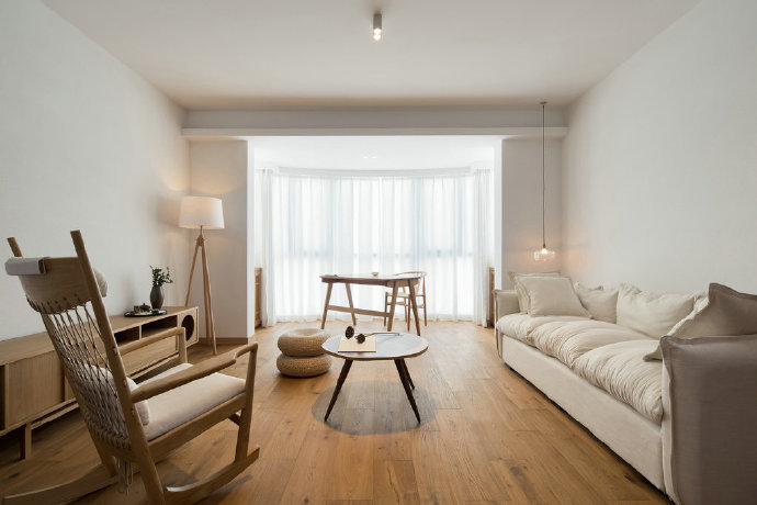 95㎡极简原木风格家居装修,清新自然的居室空间。