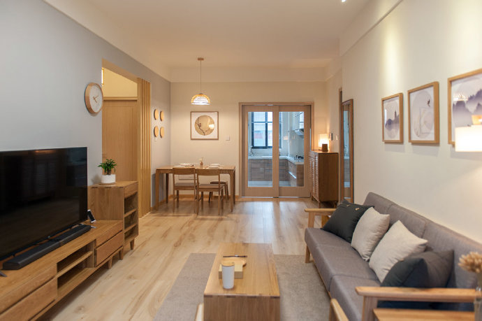 80㎡现代简约风格家居装修设计,淡淡的原木质感。