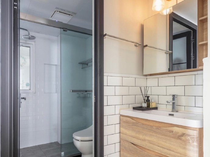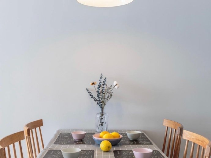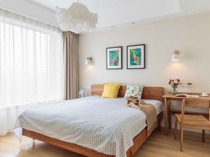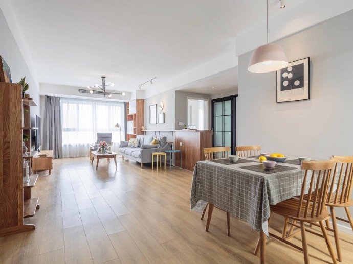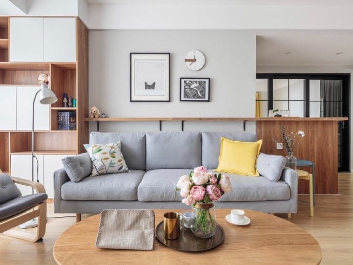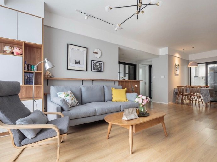 89平三居室,以木色,白色,浅灰色来营造了一种静谧的舒适感