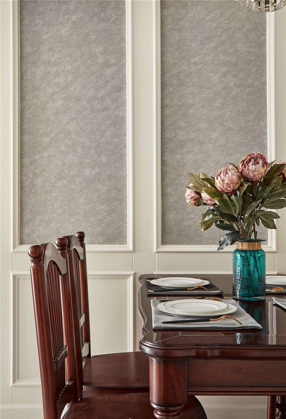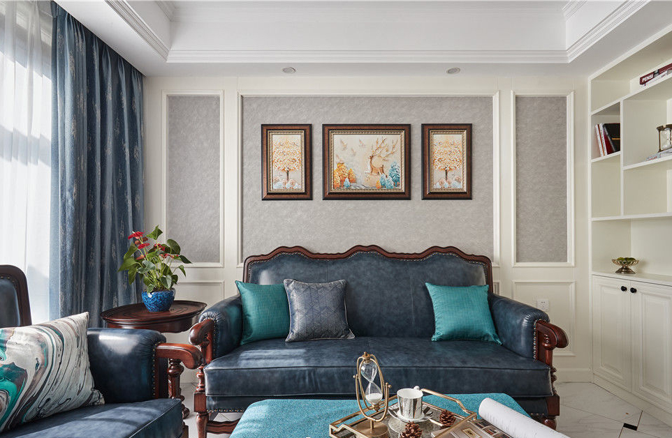 89平三居室复古典雅美式风格装修案例效果图。