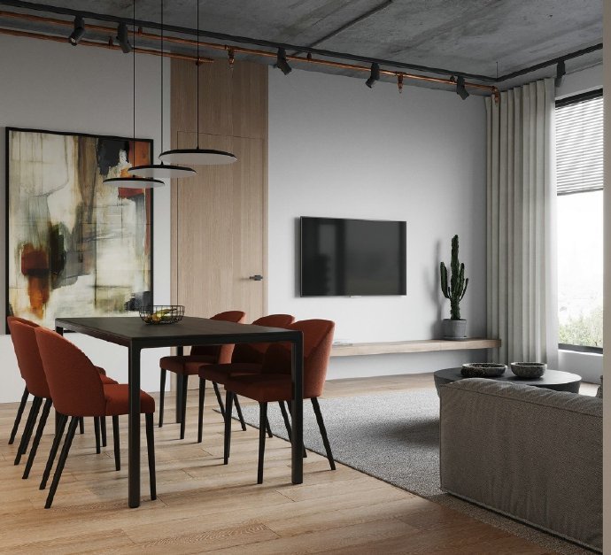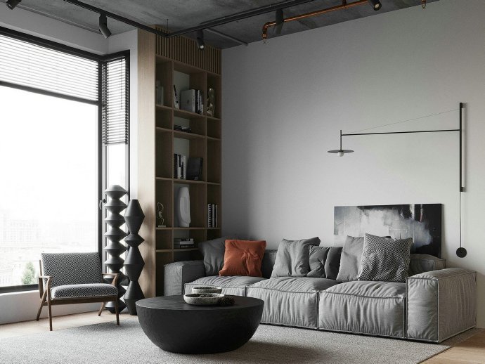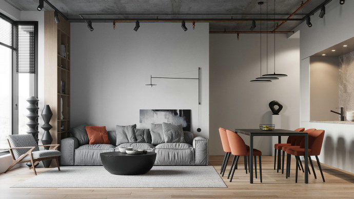 时尚混搭的公寓设计效果图。