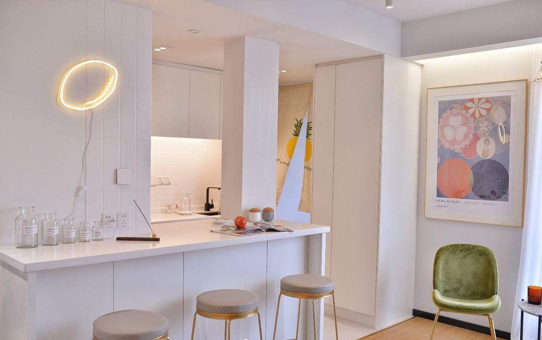 45平两居室现代简约风格大胆配色装修效果