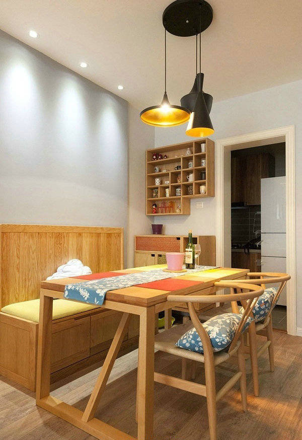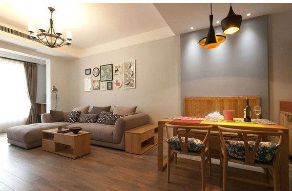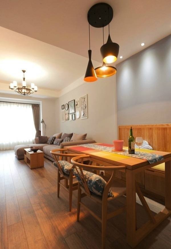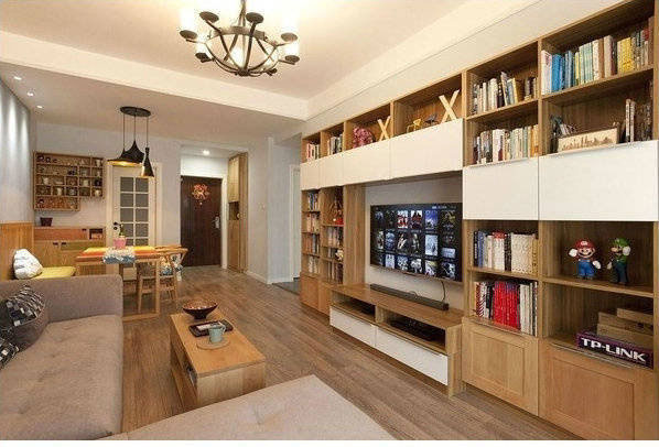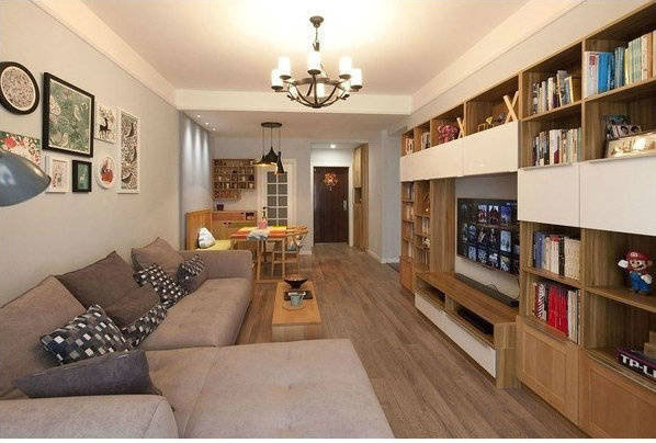 90平两居室原木混搭风格装修案例。
