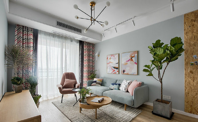 60㎡北欧风格干净舒适两居室装修设计效果图