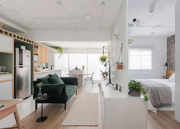 小户型单身公寓北欧风装修设计效果图。