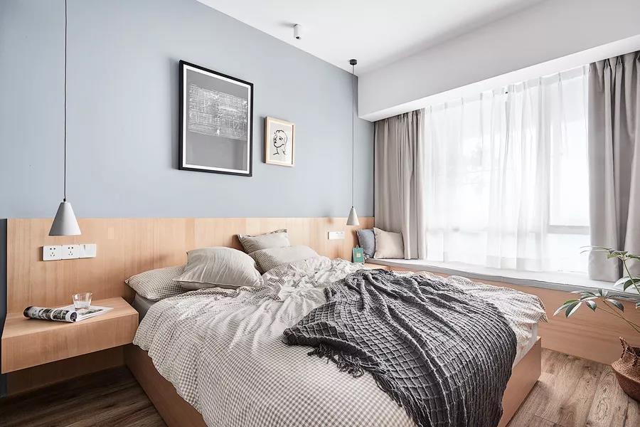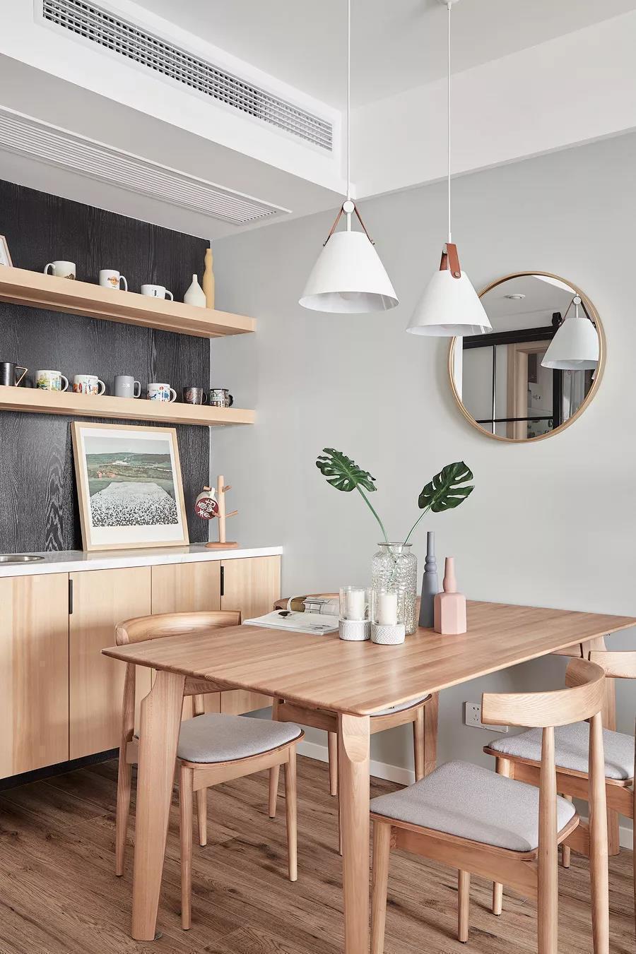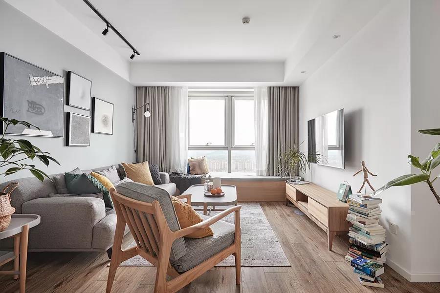 90平文艺北欧风三居室装修案例效果图。