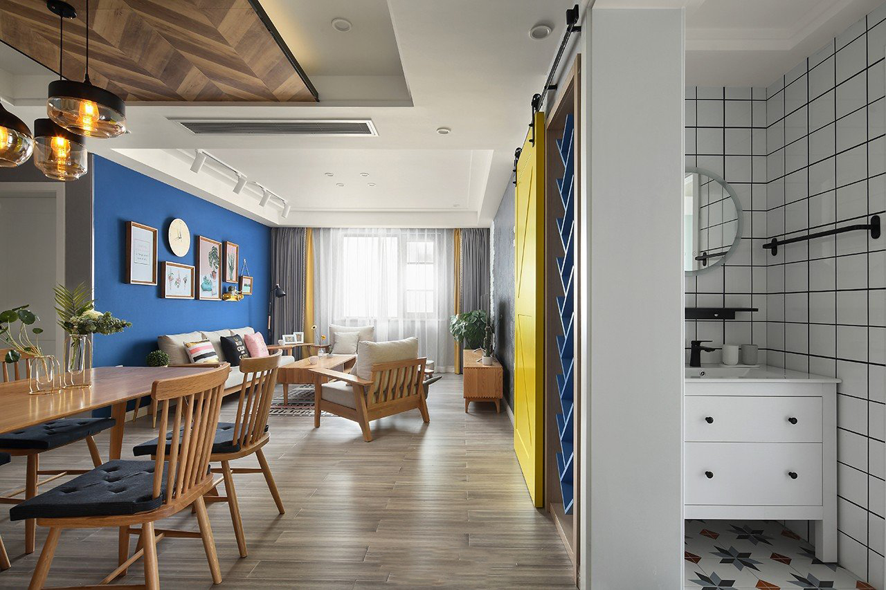 90平北欧风混搭三居室装修案例效果图。