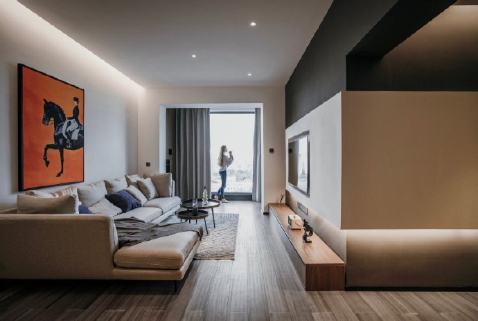 90平现代简约混搭风格三居室装修设计。