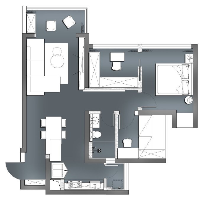 90平现代简约混搭风格三居室装修设计