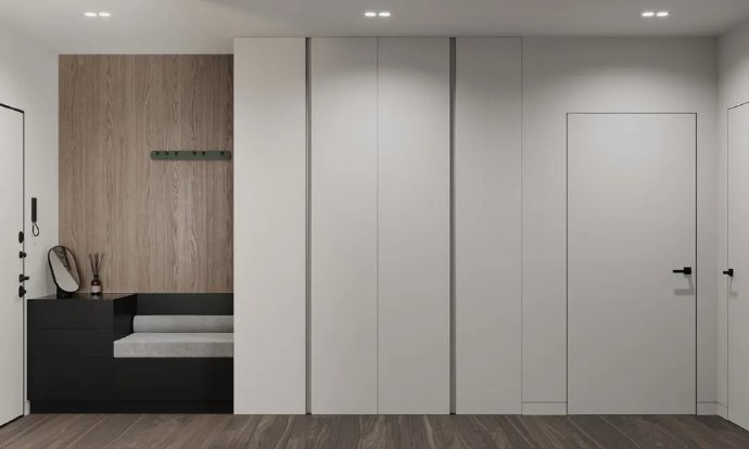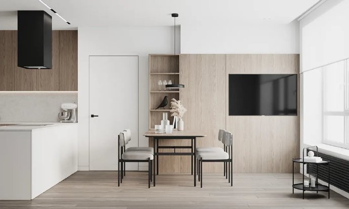 80㎡原木混搭白色系装修案例效果图。