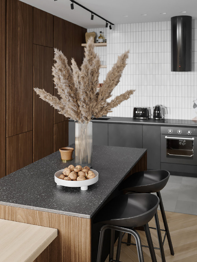 70平一居室现代简约风格装修案例效果图。