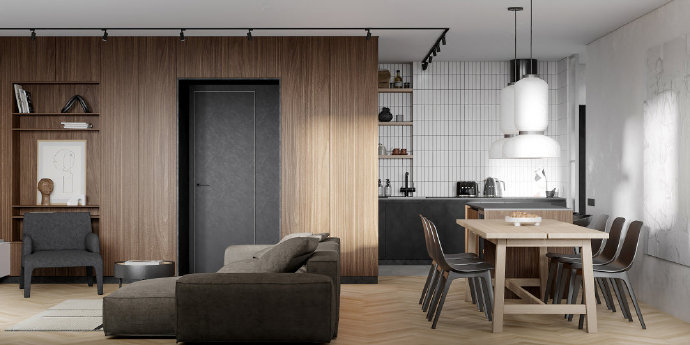 70平一居室现代简约风格装修案例效果图