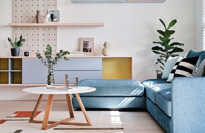 120平三居室北欧风多色彩装修案例效果图。