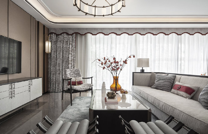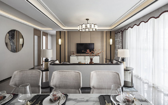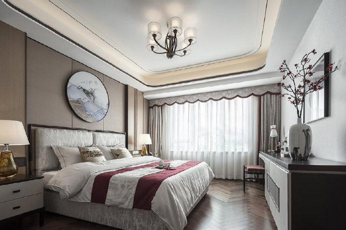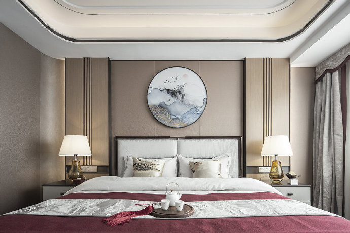 140平新中式四居室装修案例效果图。