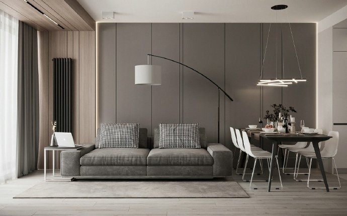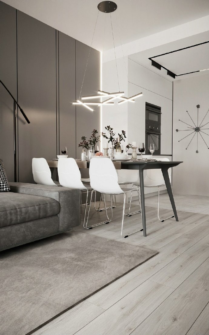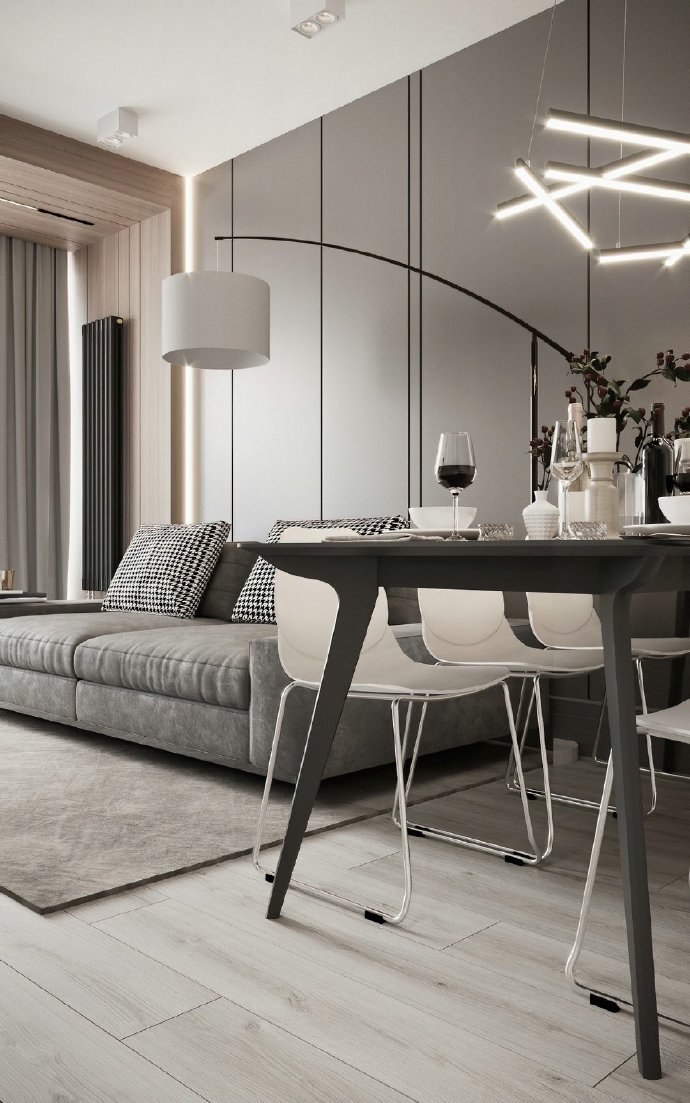 120平现代简约三居室装修案例效果图。