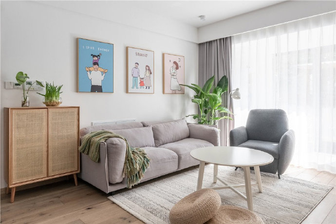 85㎡简约北欧风二居室装修设计效果图。