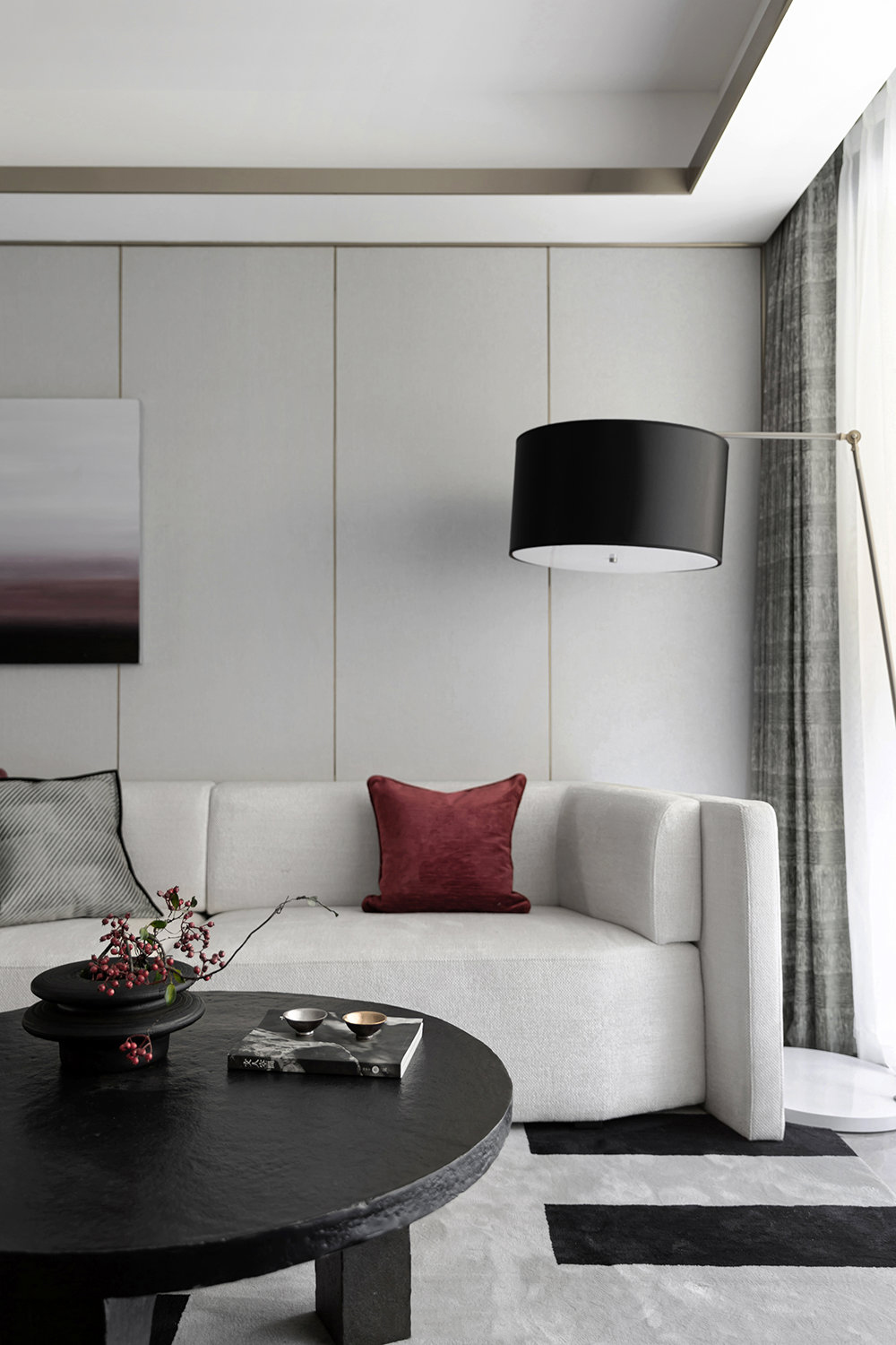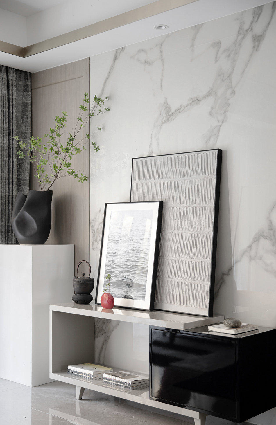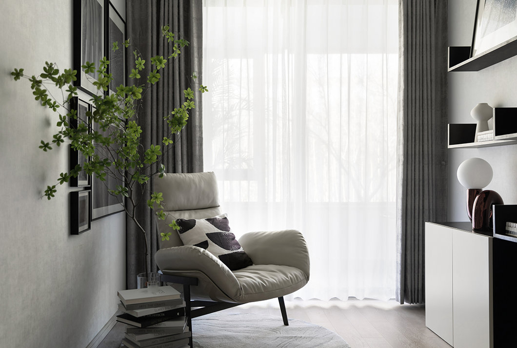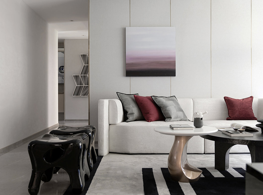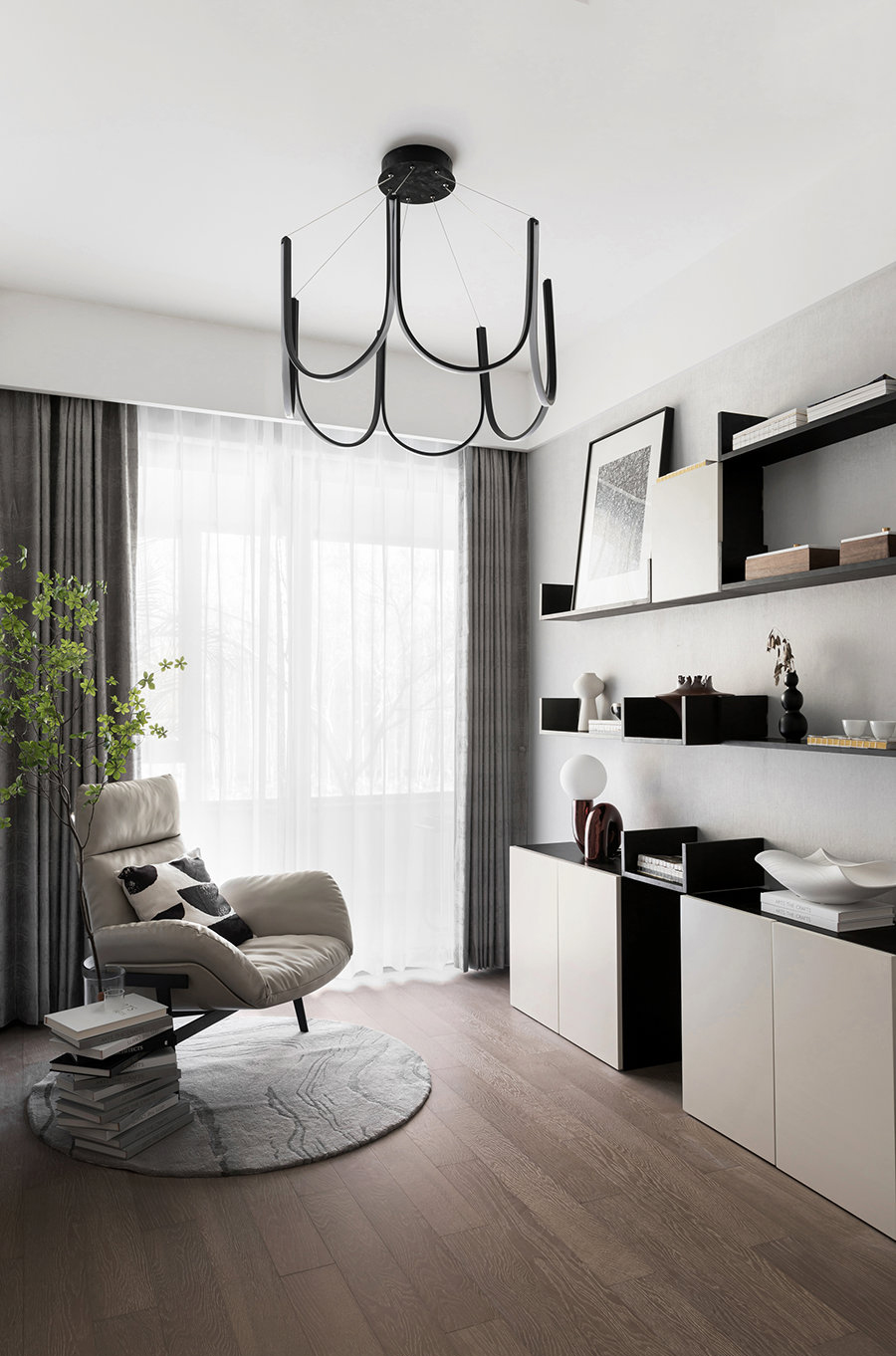 135㎡现代简约黑白灰三居室装修设计效果图。