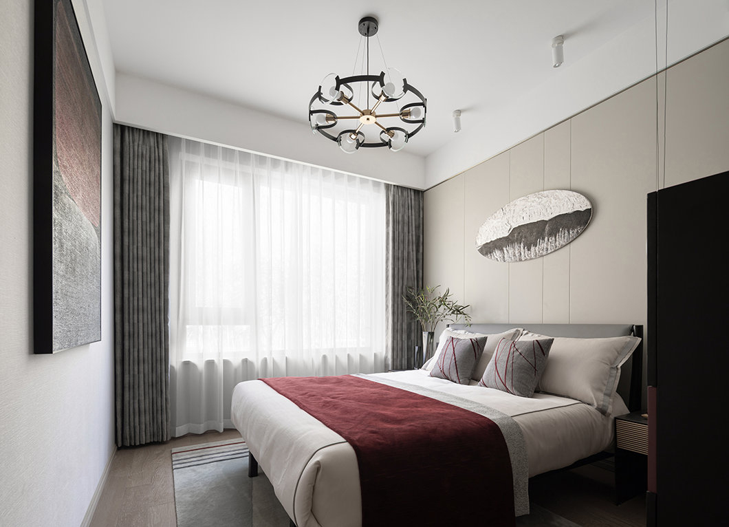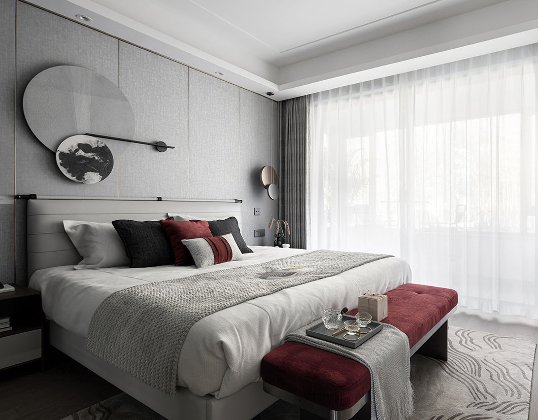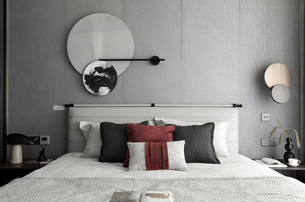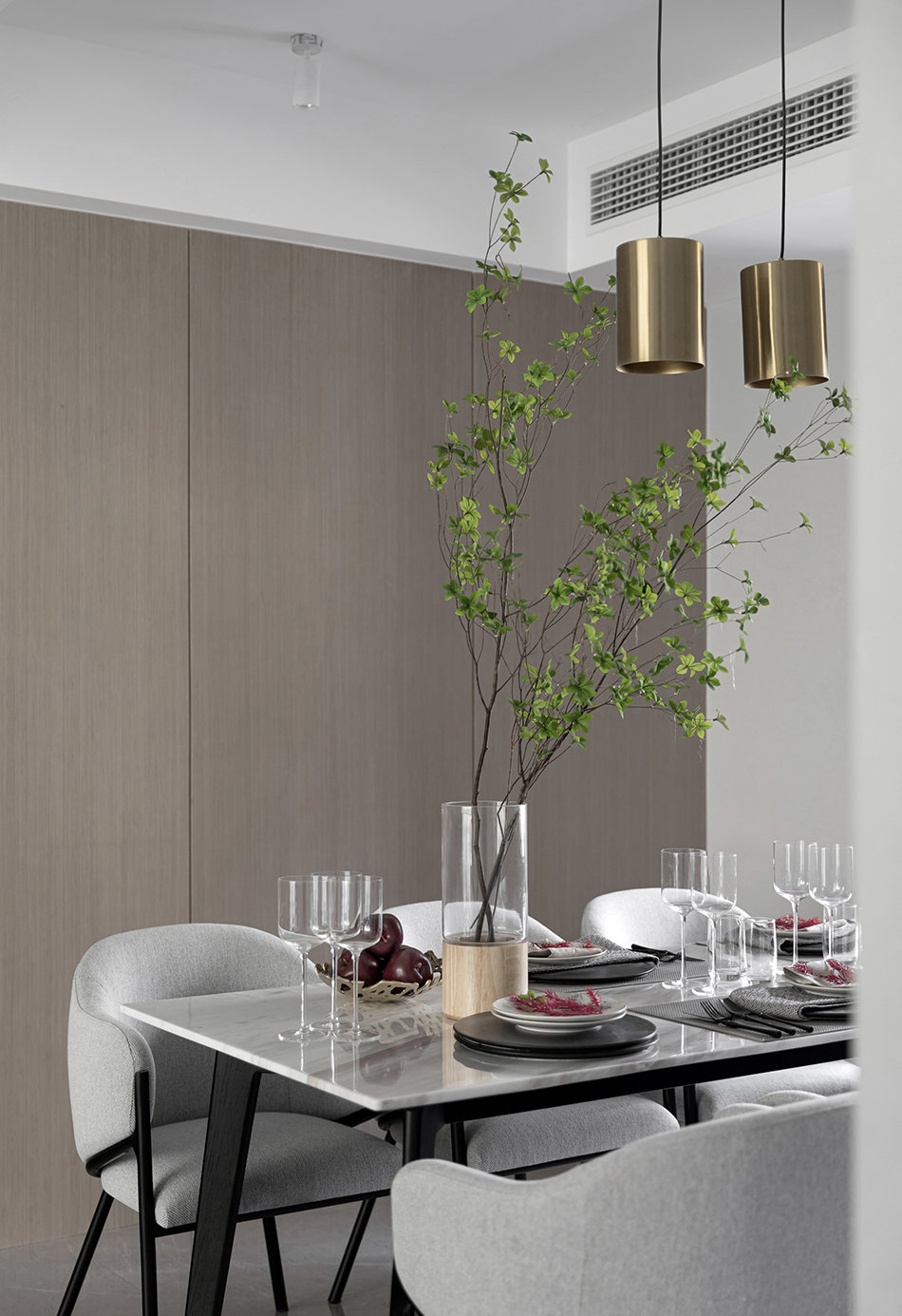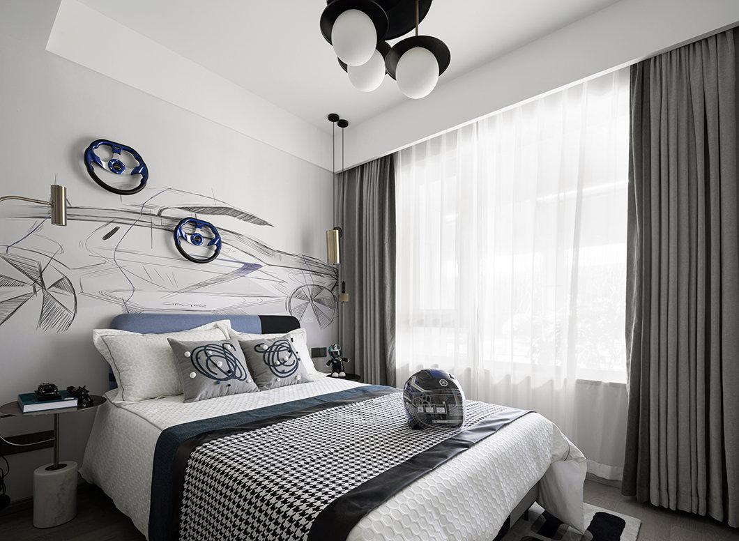 135㎡现代简约黑白灰三居室装修设计效果图。
