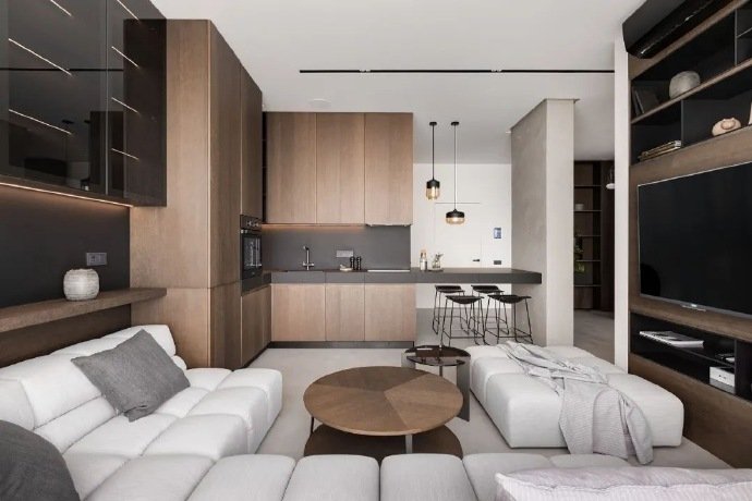 120平现代简约两居室装修设计效果图。