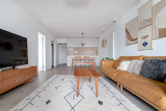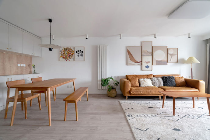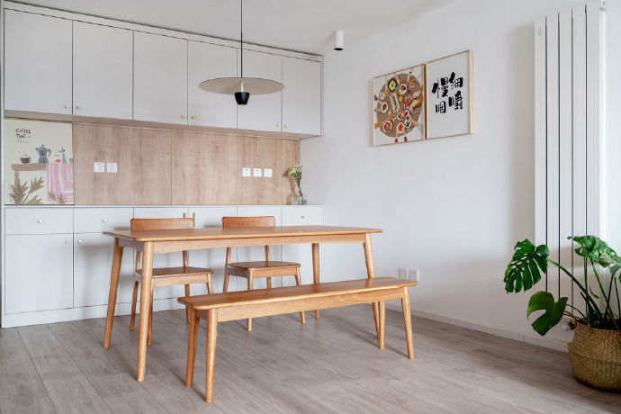 80㎡北欧日式混搭风三居室装修案例效果图。