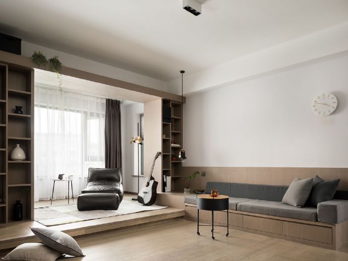 120平现代简约原木混搭高级灰设计装修效果图