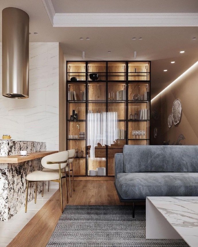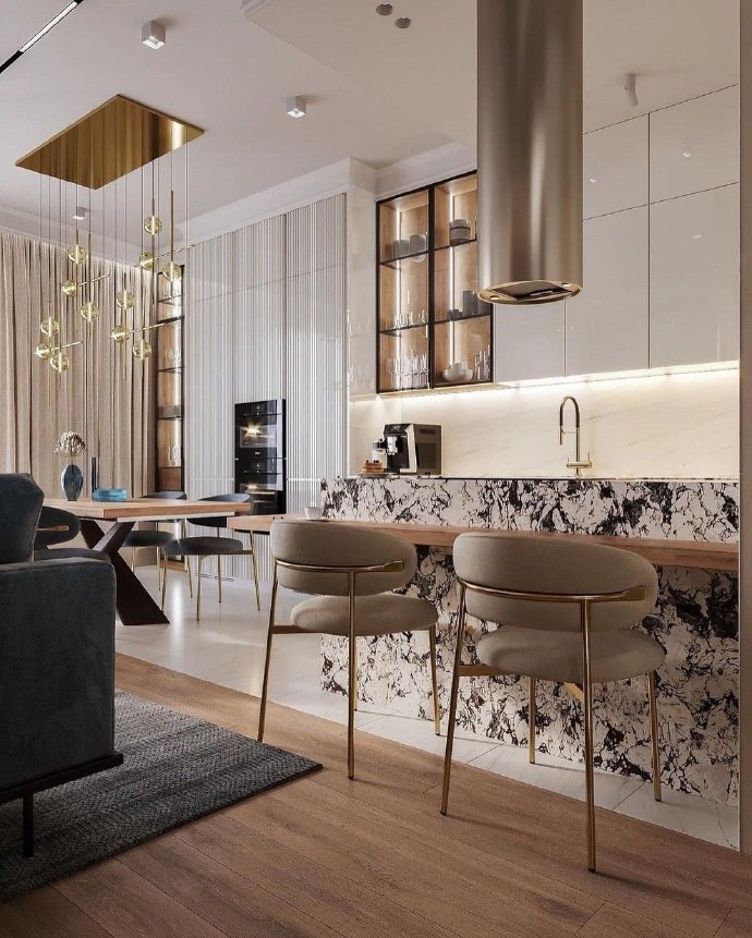 90㎡三居室轻奢风,每一个空间都仿佛到了国际化大都市层圈层