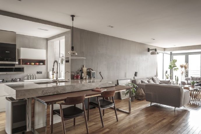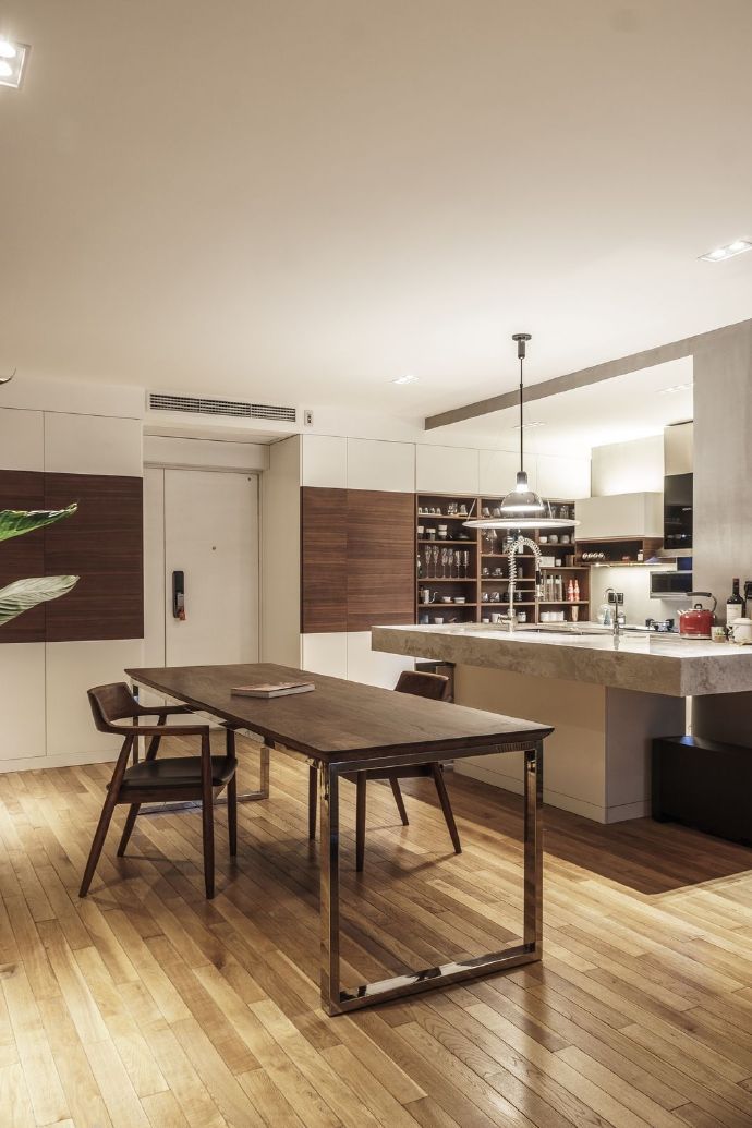 105㎡现代混搭风格住宅装修设计效果图。