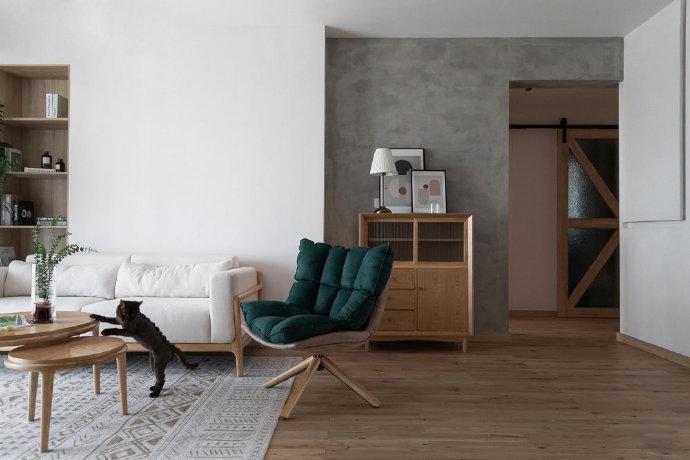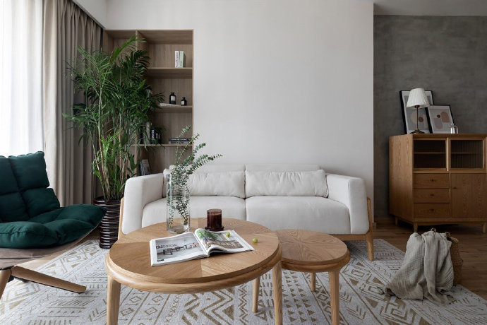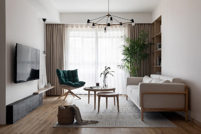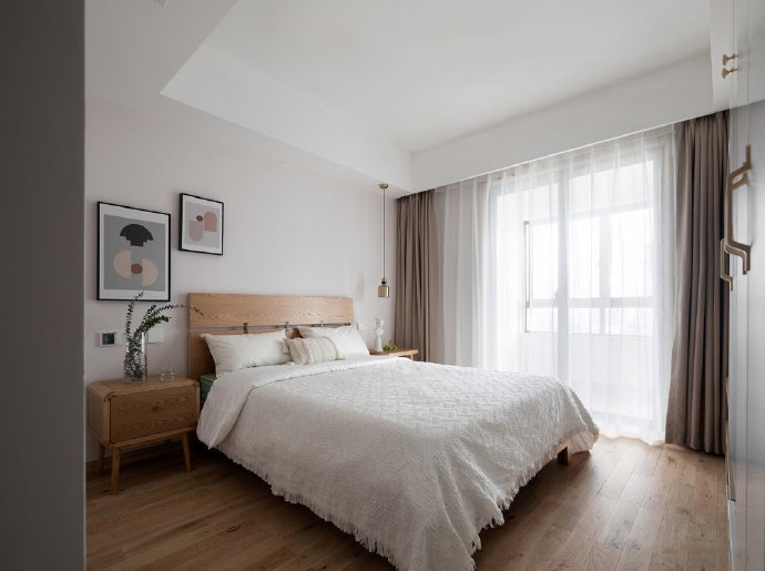 90平简约日式风格三居室装修设计效果图。