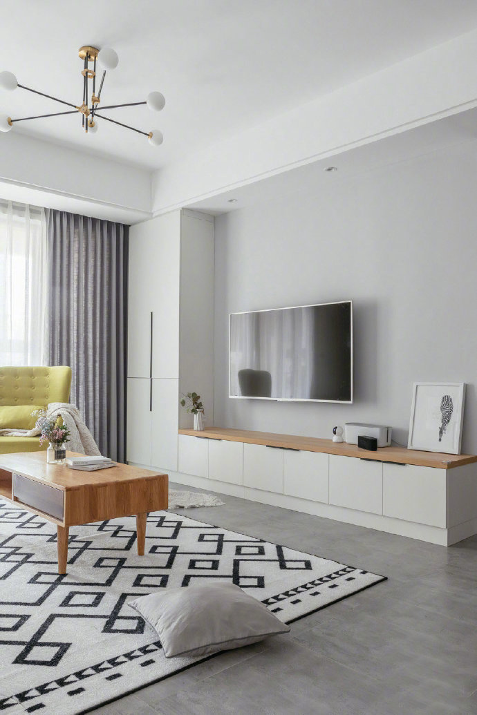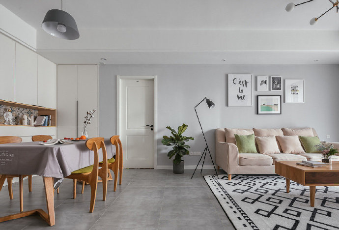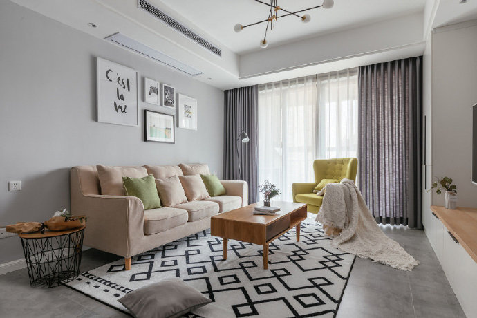 105平北欧风格三居室装修案例效果图。
