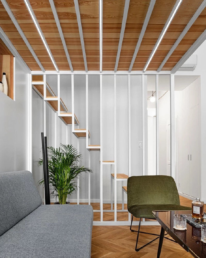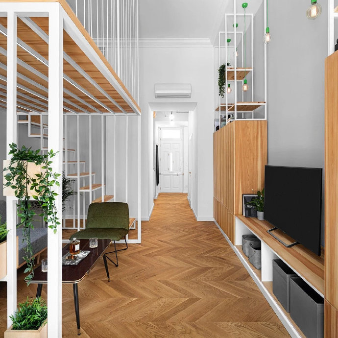 60㎡LOFT温馨原木色装修设计效果图。