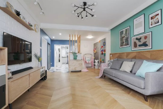 70㎡简约北欧风格两居室装修案例效果图。