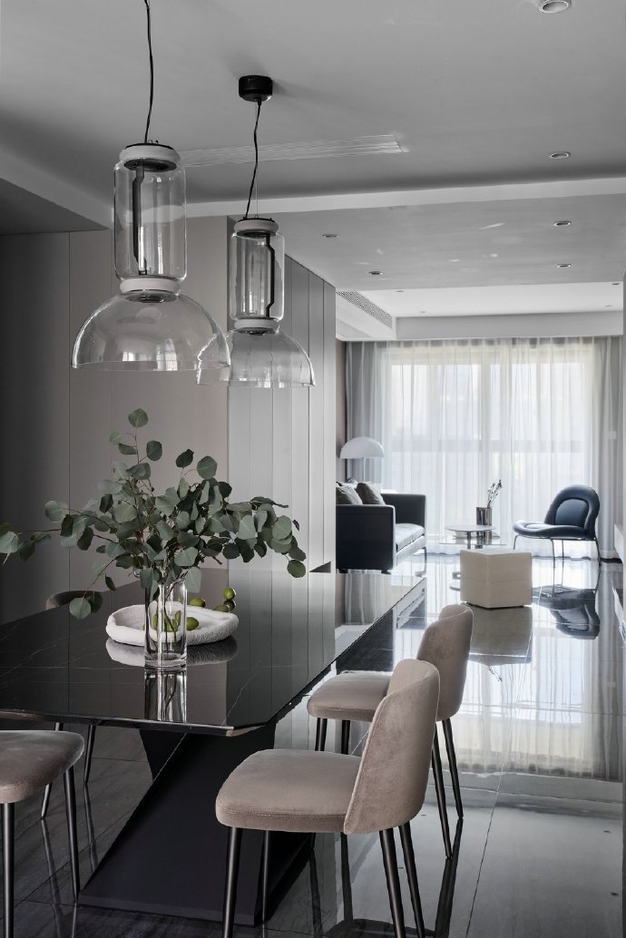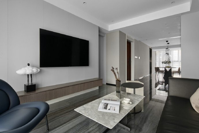 135平现代简约风格三居室装修设计效果图。