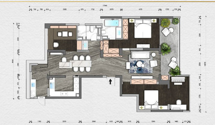 142平现代轻奢绿色调三居室装修设计效果图