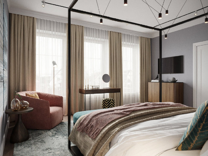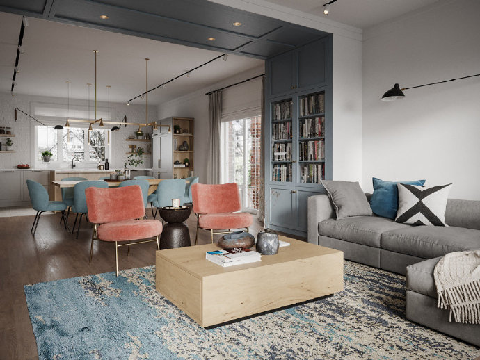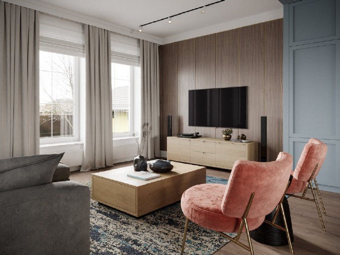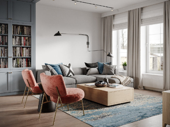 134㎡北欧风设计,灰色和木纹搭配打造三居室
