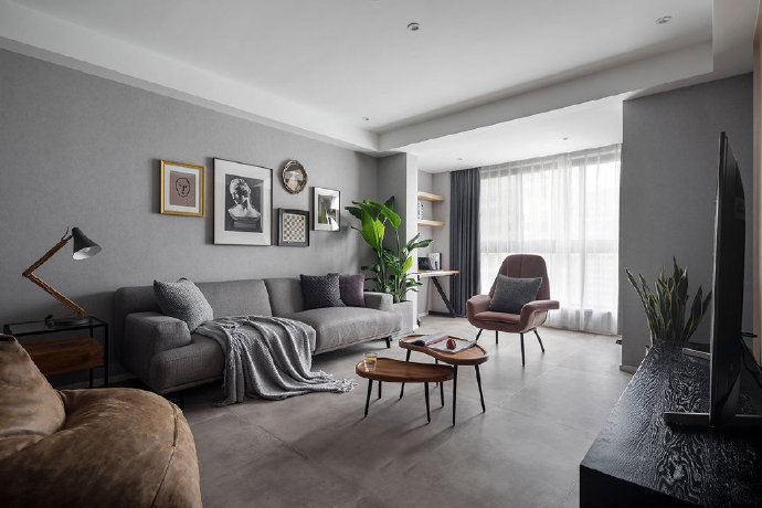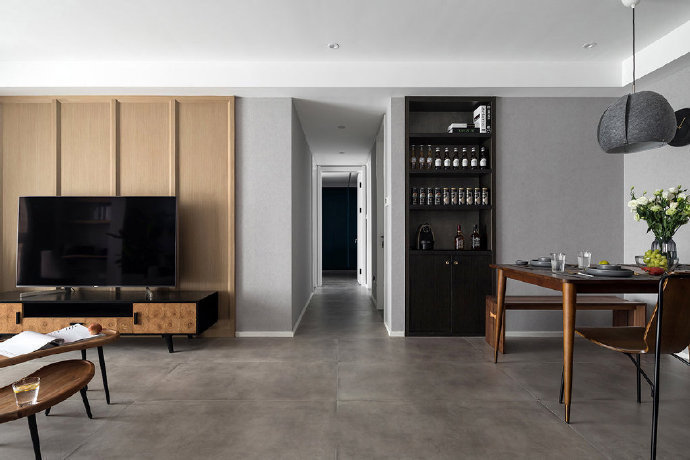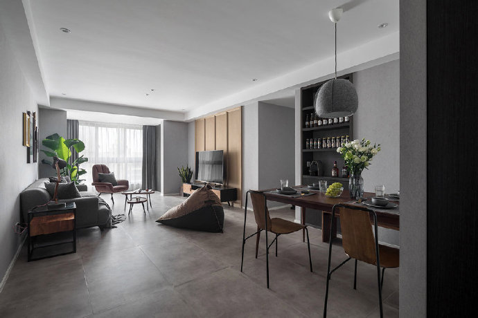 134㎡北欧风设计,灰色和木纹搭配打造三居室。