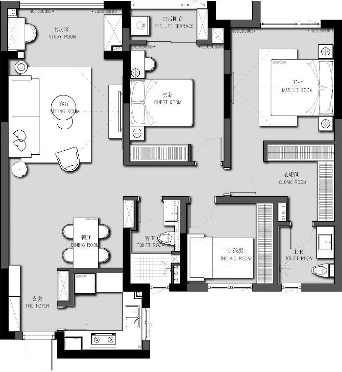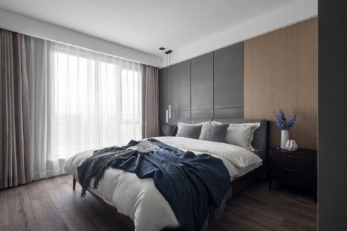 134㎡北欧风设计,灰色和木纹搭配打造三居室