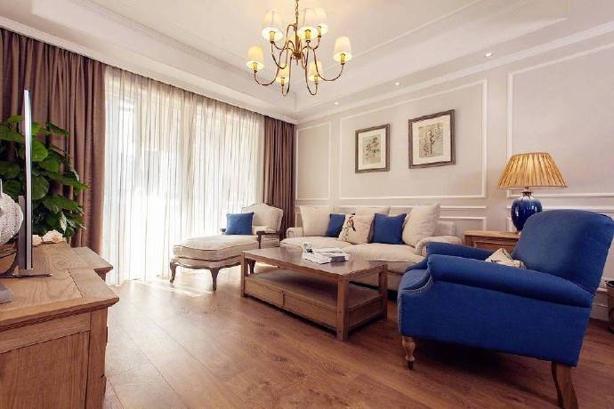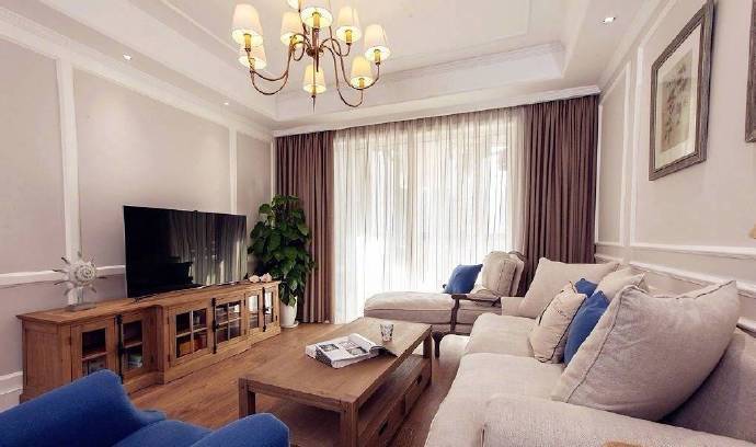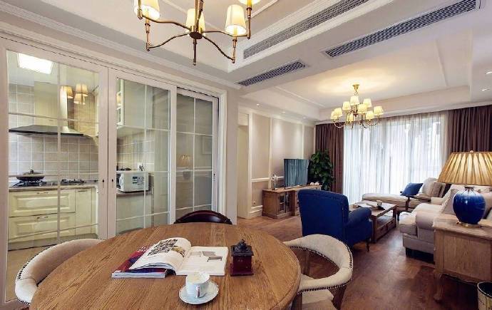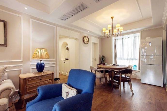 102㎡简约美式风格三居室装修设计案例。