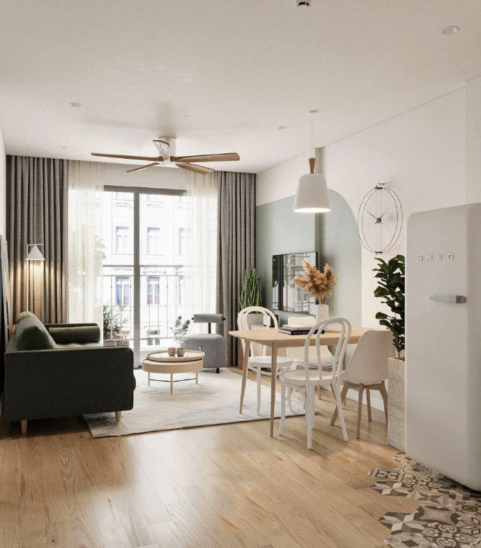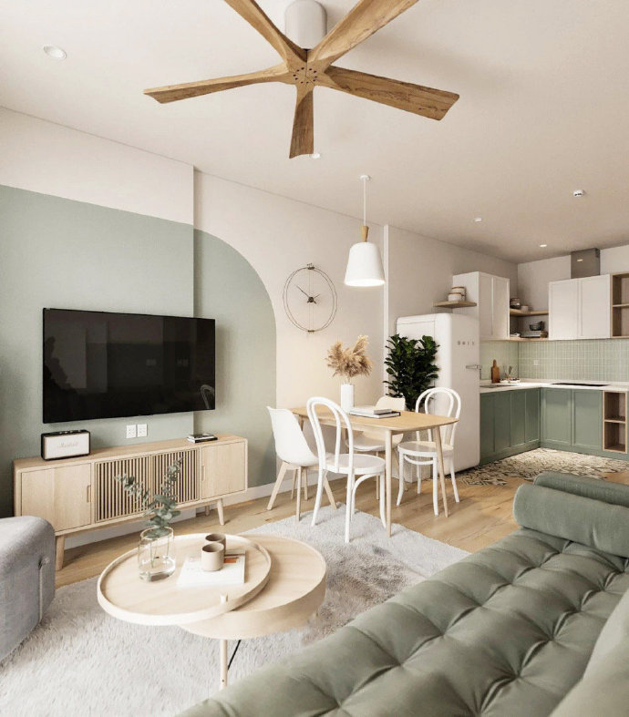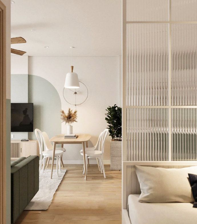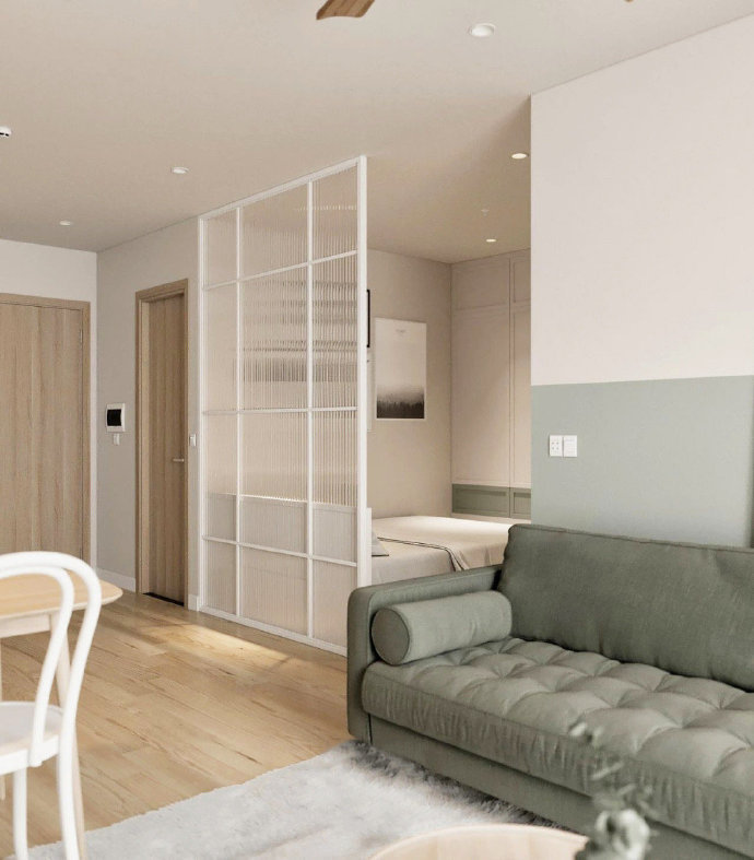 40㎡灰绿自然清新北欧风小户型装修案例。