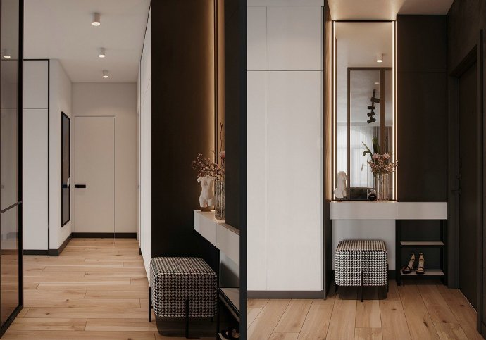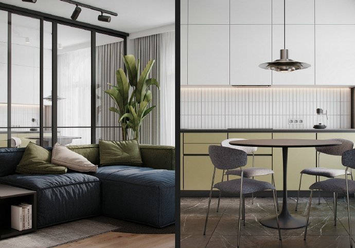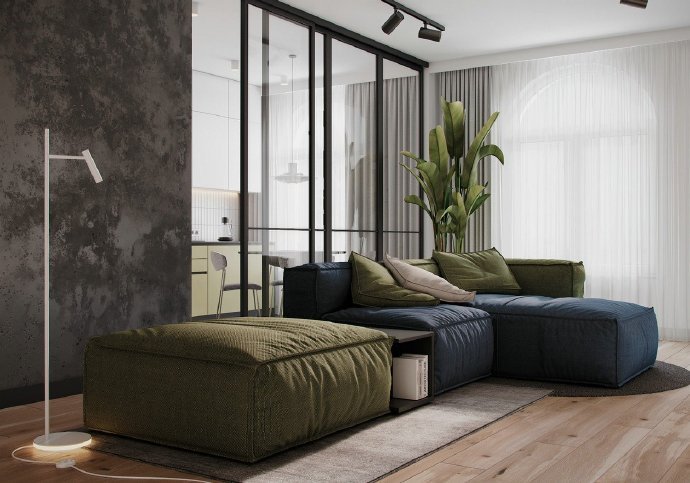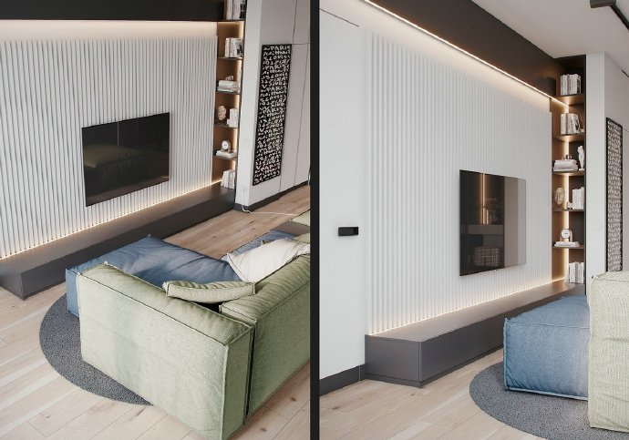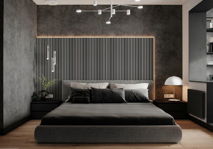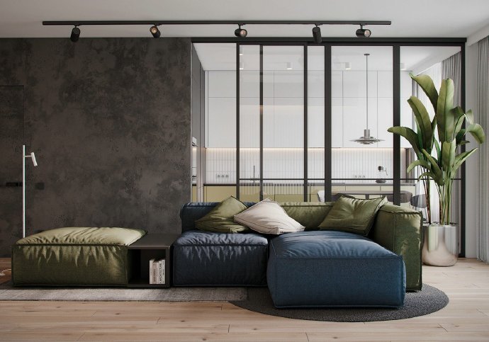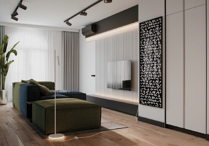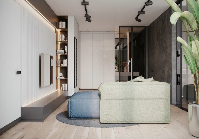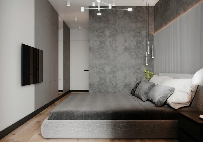 90平现代简约风格两居室装修设计效果图。