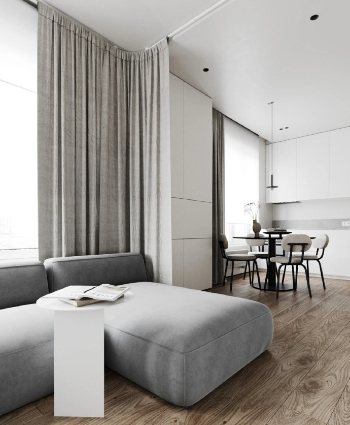 40㎡现代极简风小公寓装修设计效果图。