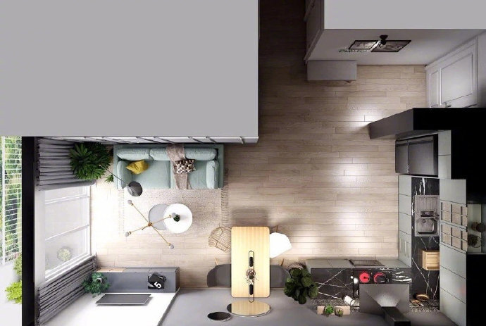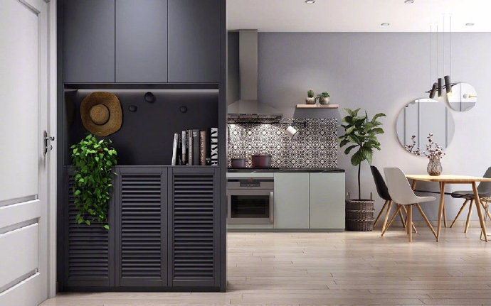 45㎡现代简约时尚小公寓装修案例效果图。