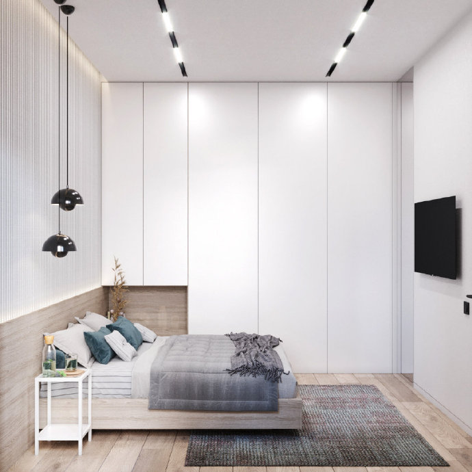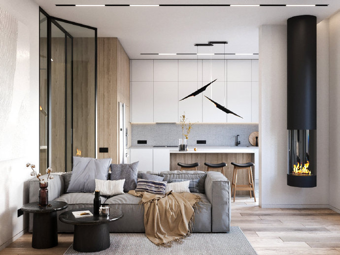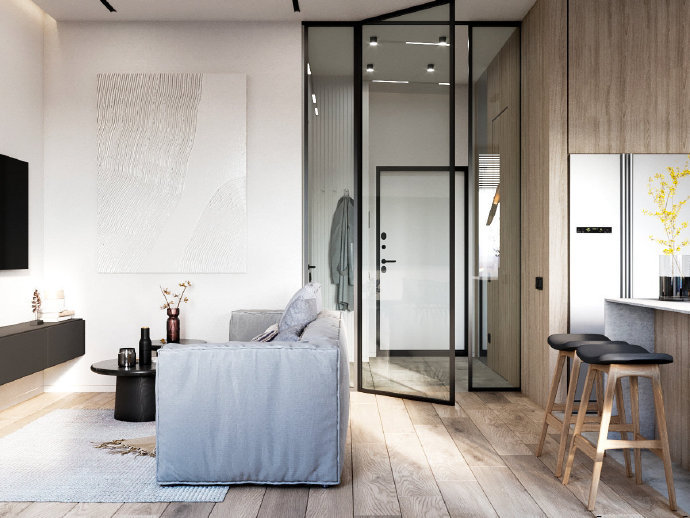 90平现代简约三居室装修设计效果图。